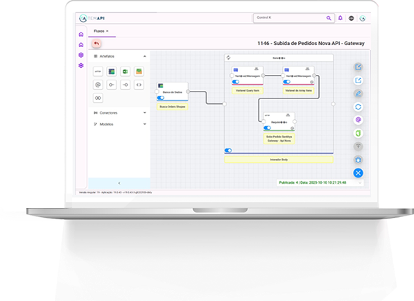 Através da nossa plataforma iPaaS, você integra seu sistema de gestão a canais de venda, soluções HCM, CRM, Analytics, WMS e outras ferramentas específicas. Atuamos no gerenciamento completo dos fluxos de integração, assegurando uma troca de dados fluida e escalável, com menor esforço operacional.
